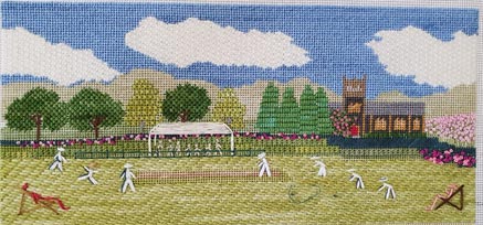- I was thinking I would write world cricket ground names and features on all four sides of the project – see an example below. If this is requested there will be an additional cost for stitching text on all four sides if a background is required to be stitched behind the text.